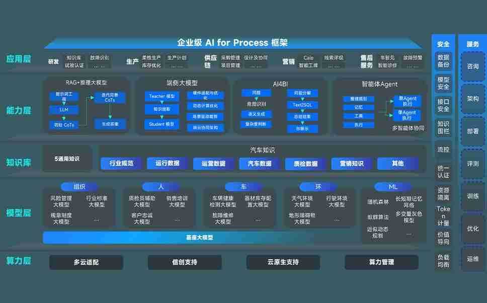 端到端的一站式AI工作空间深度融合了从企业战略规划到日常经营的全流程业务板块,,定向解决车企内部领域多、、、、部门多、、、、链条长、、、场景碎片化等难题,,支持车企快速构建以AI为核心的生产力写作体系,,,,实现任务执行与AI能力的无缝集成与交互